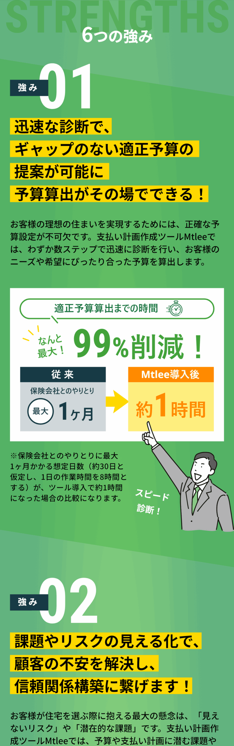 ツールは正確な予算診断を行い、顧客に最適な提案を提供します。これにより、顧客の信頼を得やすくなり、成約率の向上が期待できます。